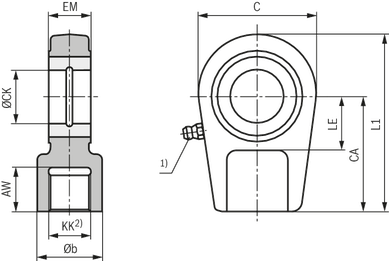 1) 润滑头,锥头形式 A 符合 DIN 71412